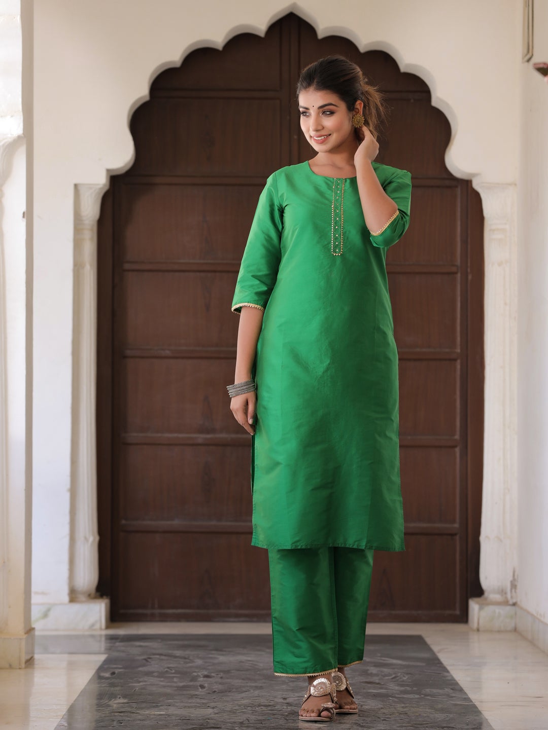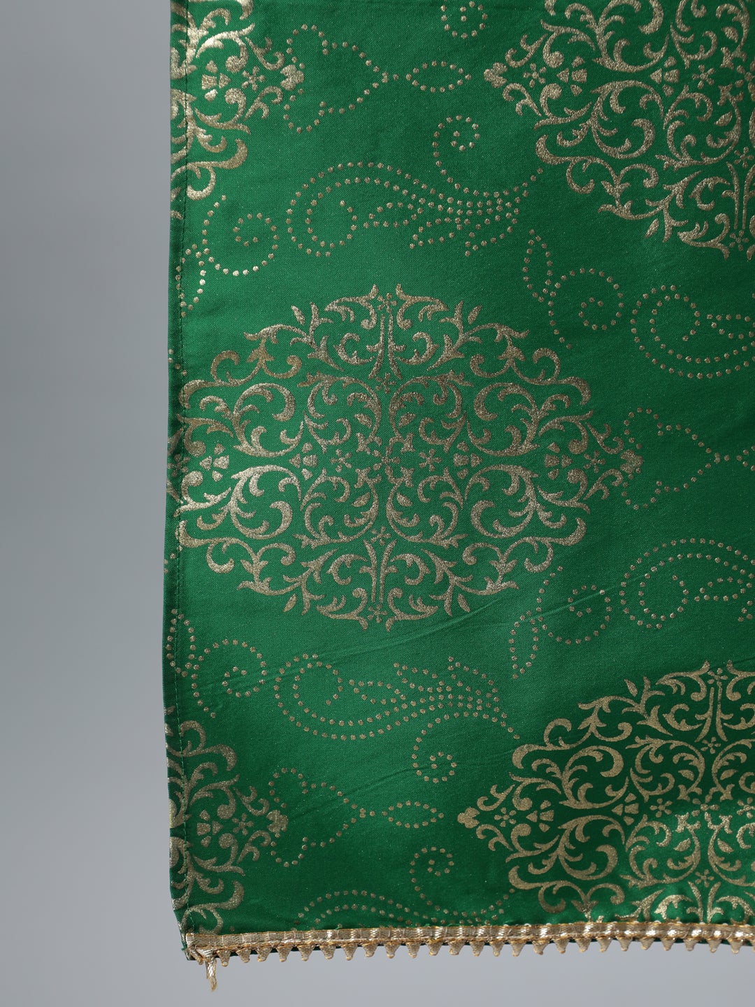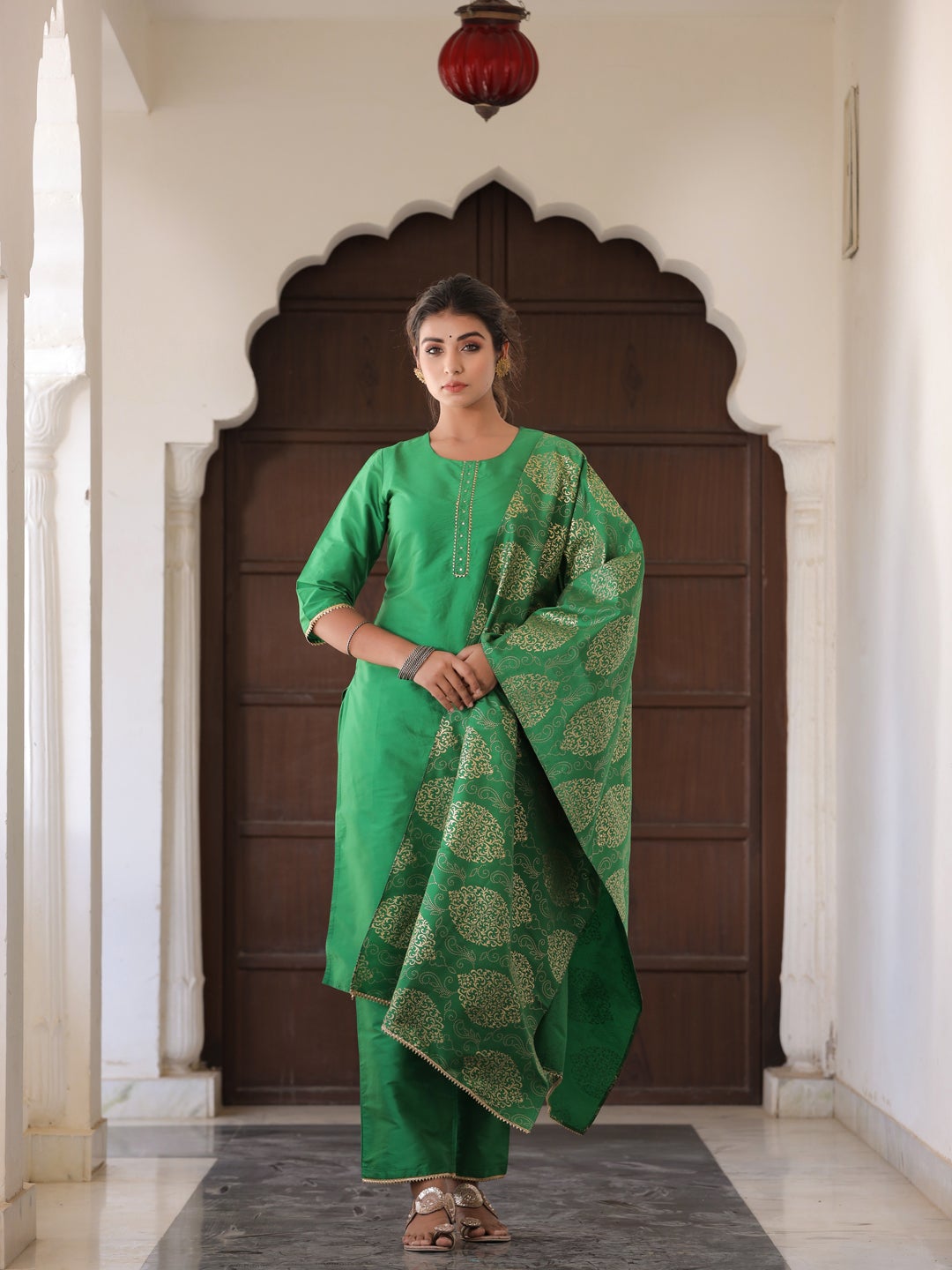 Green Solid Straight Kurta with Gotta work on Palazzo & Printed Dupatta
