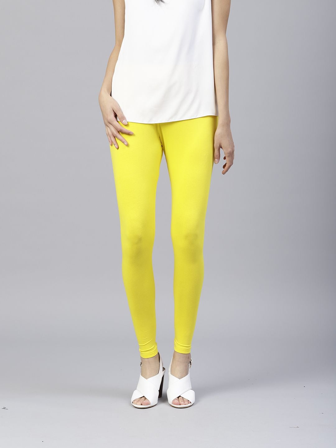 Jaipur Kurti Women Yellow Solid Cotton Lycra Leggings. These Regular Fit Cotton Lycra Leggings are very comfortable and can be pair with any Kurta and Top.
