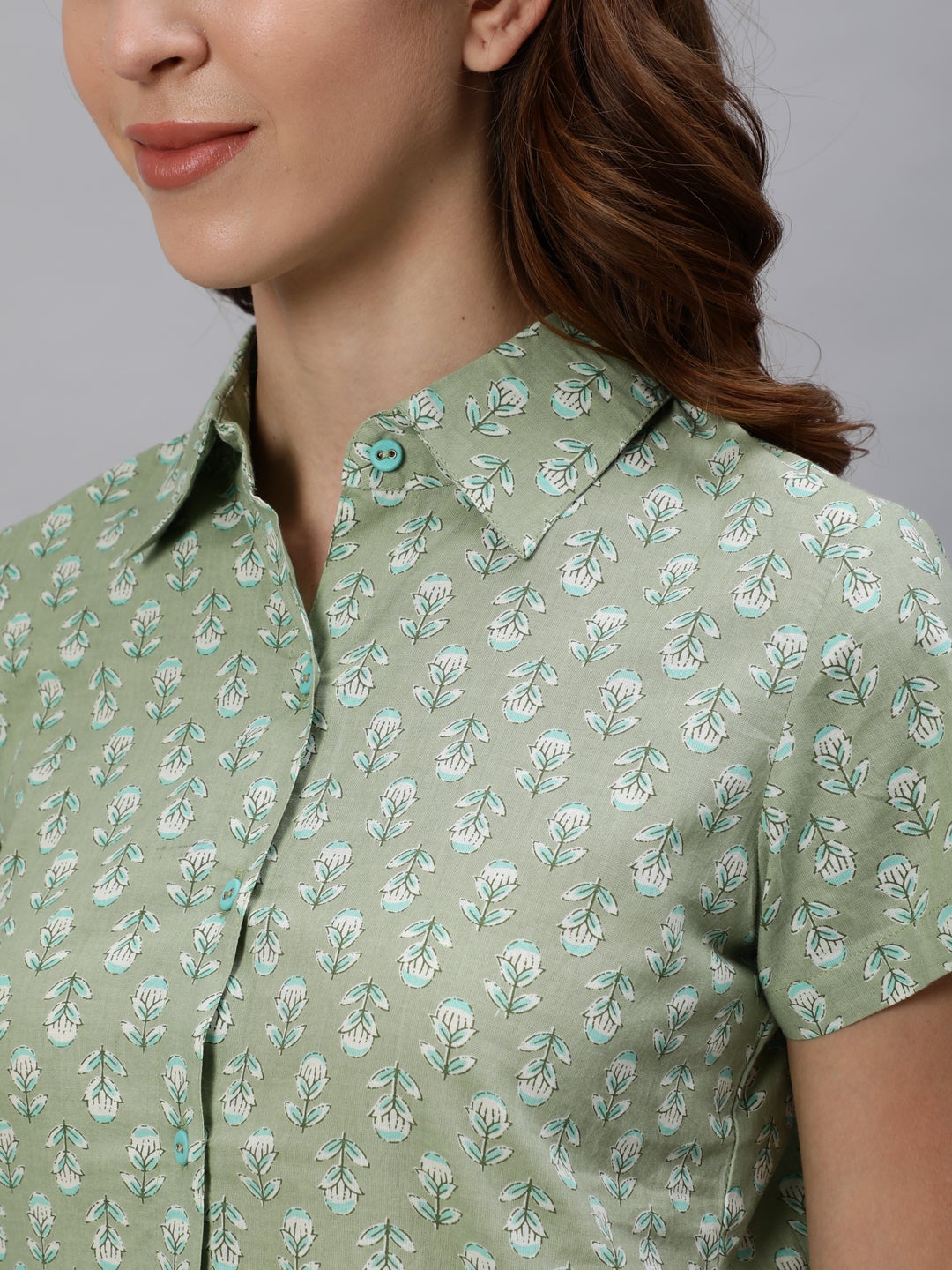 Green ethnic print loungewear set consists of cotton straight short kurta and shorts