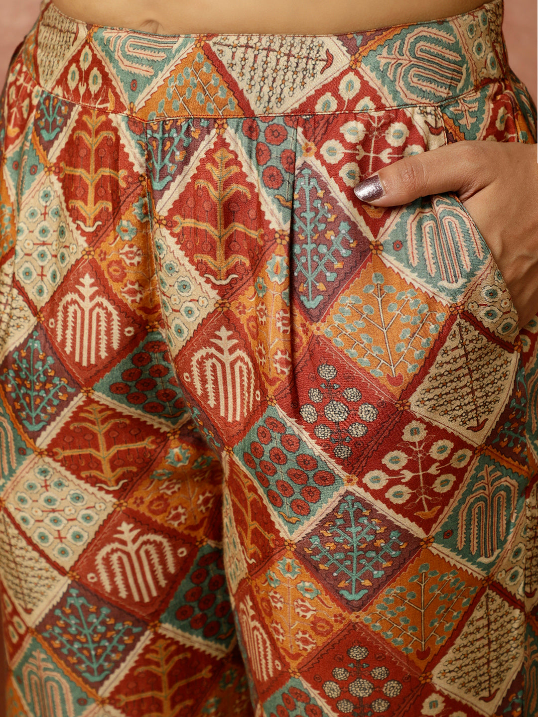 Rust Multicolor Print Wrap Top With Palazzo Co-Ord Set