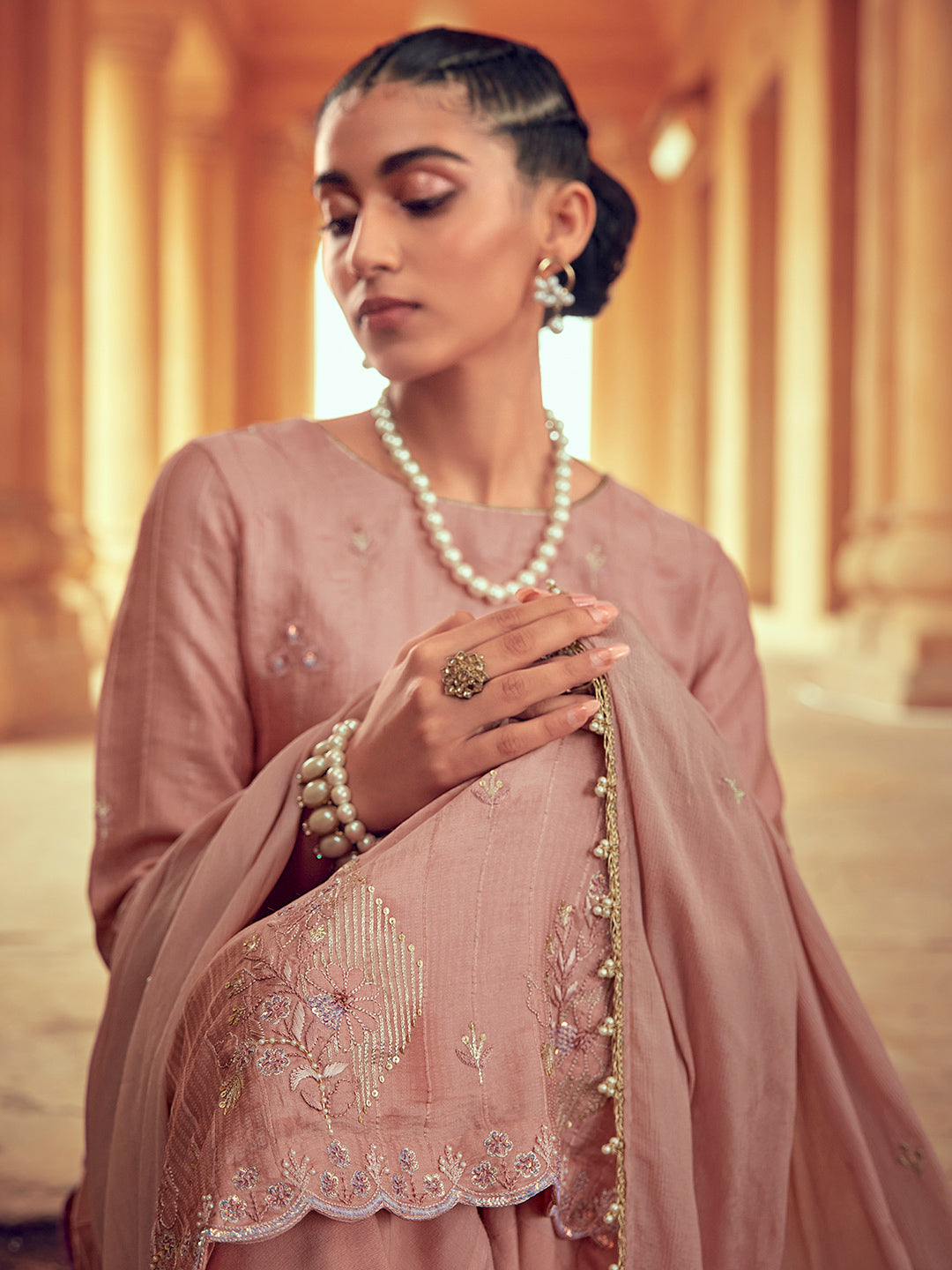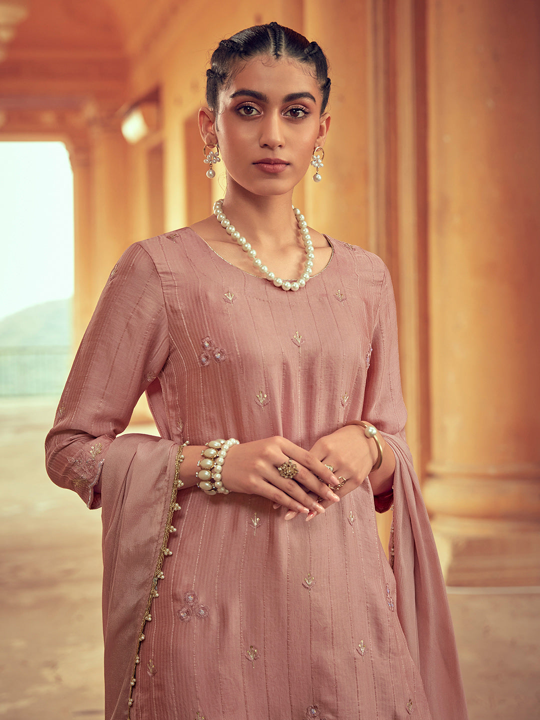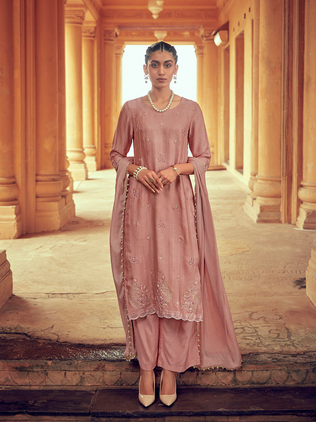 Light Green Color Straight Zardozi Embroided Kurta With Pants And Chinon Embroidered Dupatta